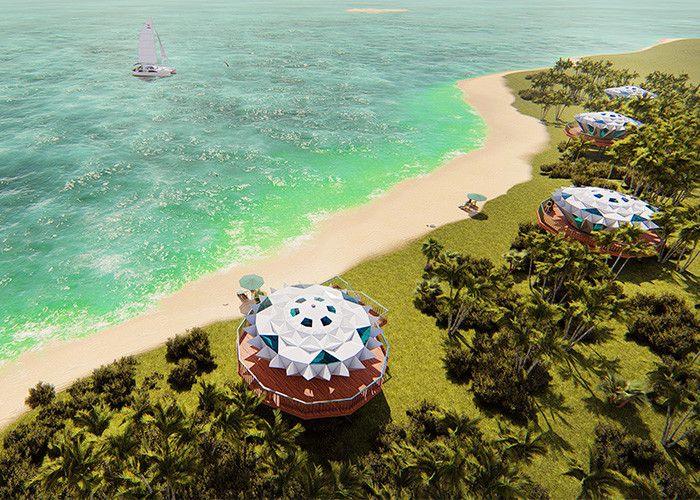| Destacar | Bungalow claro de Overwater da armação de aço,Bungalow do Eps Overwater,Bungalow Geodesic de Overwater |