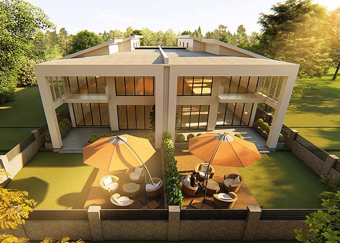 Vila duplex de luxo pré-fabricada com estrutura de aço leve ou sistema de painéis