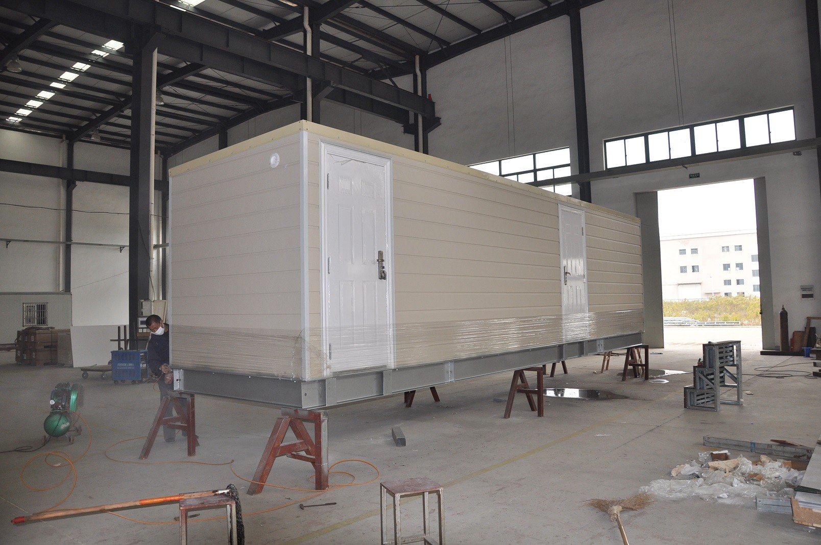 A casa pré-fabricada de aço leve de combinação DeepBlue® é um alojamento ou escritório flexível, pré-acabado e totalmente mobiliado.