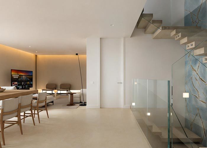 Ao entrar, será recebido numa sala de estar luminosa e espaçosa, com um tom de abertura e conforto.Uma suíte de quarto confortável com casa de banho privada oferece privacidade para os hóspedes ou famíliaO espaço de estar flui sem esforço para uma moderna cozinha e zona de jantar, perfeitas para a vida diária e entretenimento.